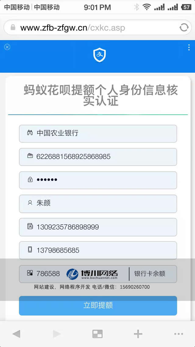 3、釣魚網(wǎng)站上提交的任何信息,均沒有經(jīng)過任何校驗和判斷,比如:手機號、身份證號碼格式等。 這在正規(guī)網(wǎng)站上是不可允許的。